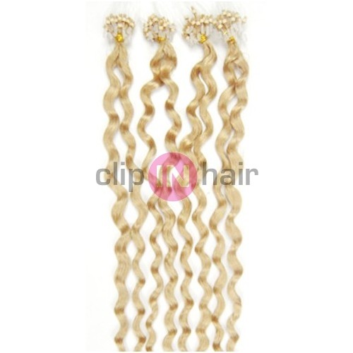 Kudrnaté prameny 100% lidských vlasů k prodloužení a zahuštění metodou Micro Ring. Již připraveny k aplikaci.